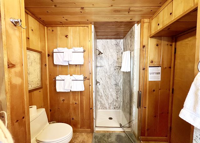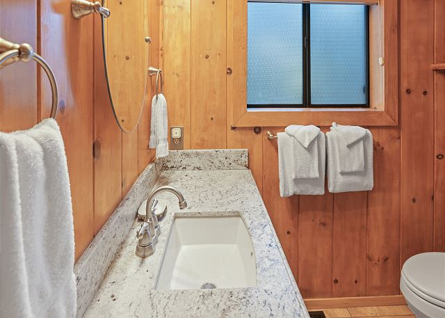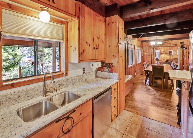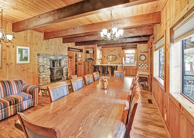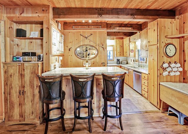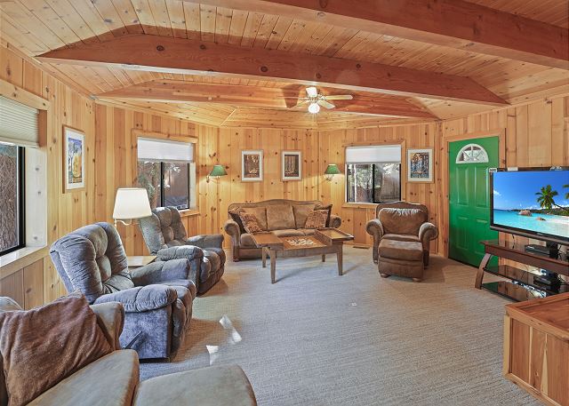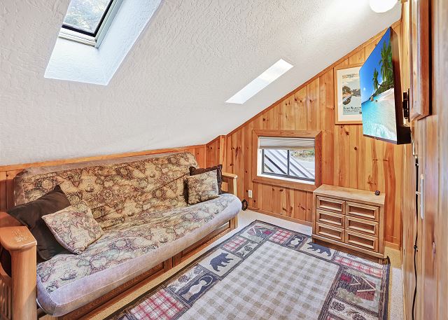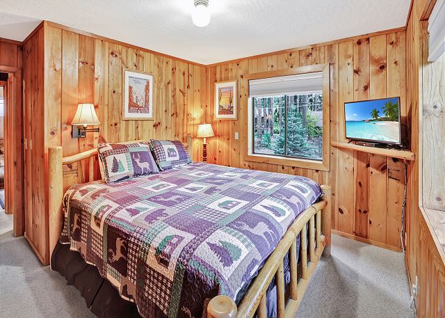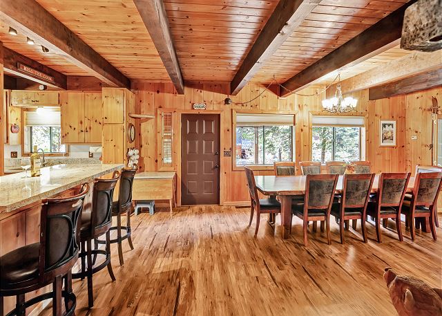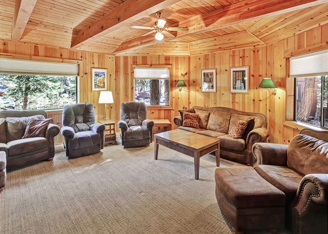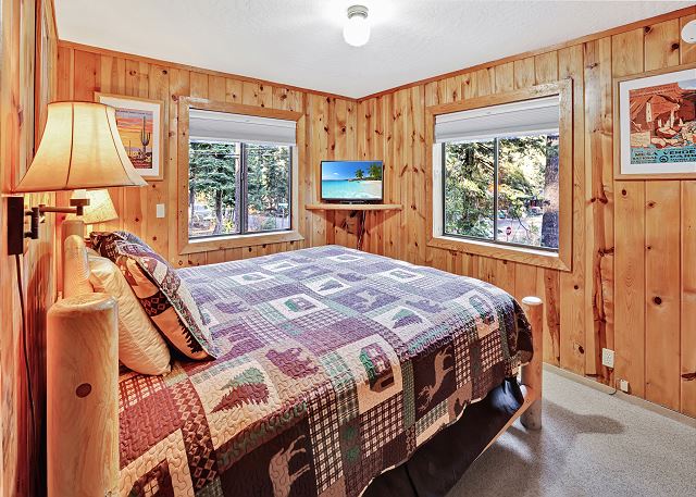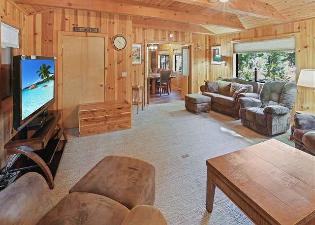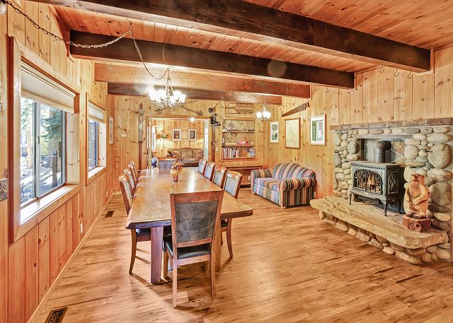 Inside, you’ll find a fully equipped kitchen with modern appliances, including a dishwasher, microwave, and disposal, plus all the cookware, dishes, and utensils you’ll need for your stay. The dining room table comfortably accommodates 10 guests. The home also features a washer and dryer, 52" flat-screen HDTV with cable, high-speed wireless internet, stereo with USB/Bluetooth connectivity, and a cozy gas woodstove for those cool Tahoe evenings. The bonus room upstairs also has a Roku TV with free cable, and you can stream your own movies. With level access and parking for up to five vehicles (in the driveway only, no street parking), it’s both easy and convenient year-round.